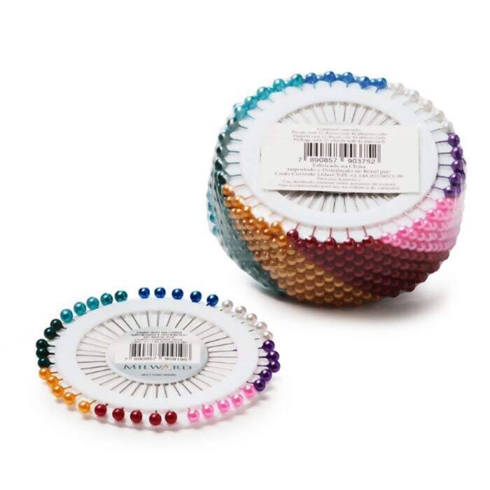 Conhecido pela sua resistência, o alfinete de cabeça de plástico é recomendado principalmente para marcações em costuras em geral e outros trabalhos manuais. Contém 12 discos com 40 alfinetes cada.