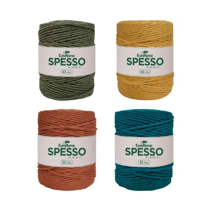 O EuroRoma Spesso Maxi de titulagem 4/32 é um barbante 32 fios, por isso é perfeito para a elaboração de peças em macramê e demais artes manuais. Resulta em macro texturas com nós e pontos super evidentes, muito em alta na decoração.