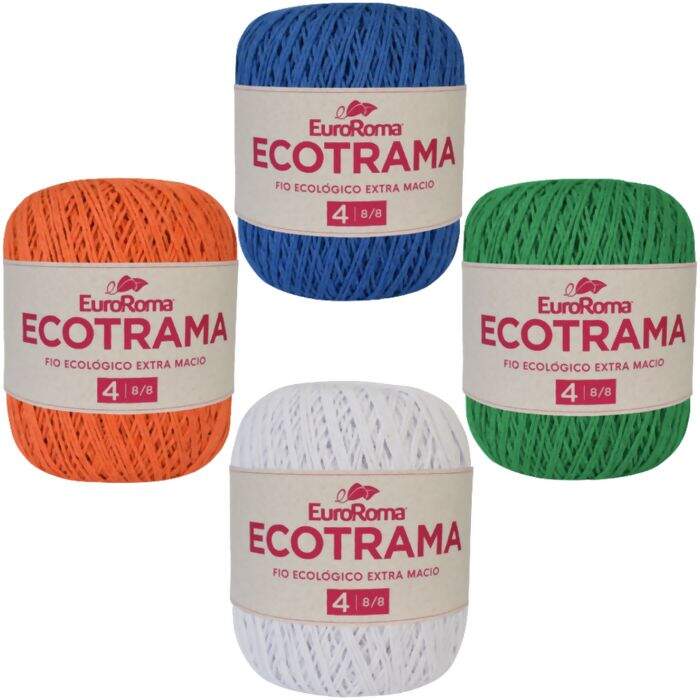 Desenvolvido através de um processo sustentável, este fio ecológico é perfeito para criar amigurumis, peças decorativas mais delicadas, belíssimos acessórios de moda, além de cair super bem em peças em tricô. O EuroRoma Ecotrama possui a titulagem 8/8, que resulta em uma espessura similar ao fio nº 4.