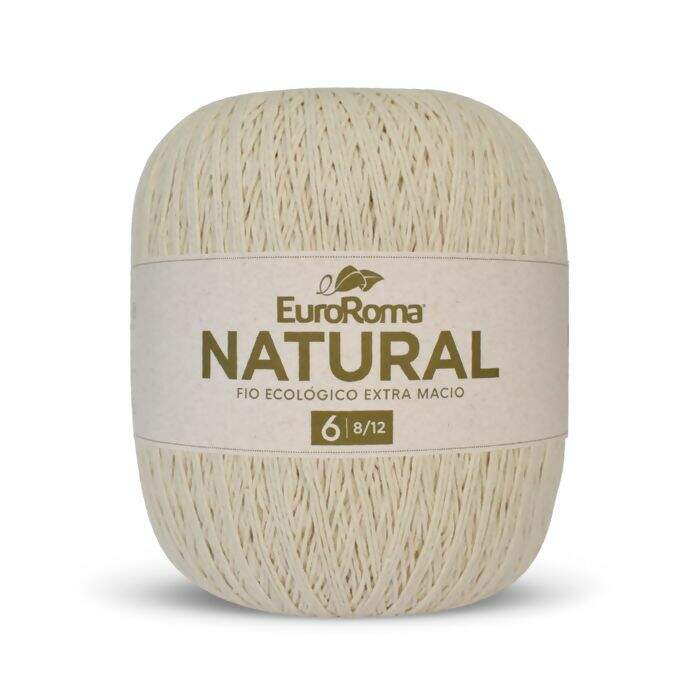 Com um fio naturalmente cru, o EuroRoma Natural surpreende pela sua maciez. A titulagem 8/12 resulta em uma espessura similar ao fio nº 6.